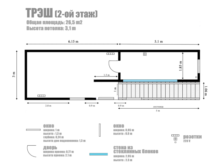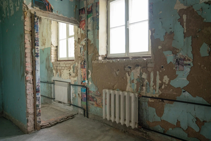 2-х этажное атмосферное творческое пространство, 60m2 (1-ый 33,5 m2) - (2-ой 26,5 m2), лестница, кафель, старые стены. Заброшенная квартира, стиль СССР.