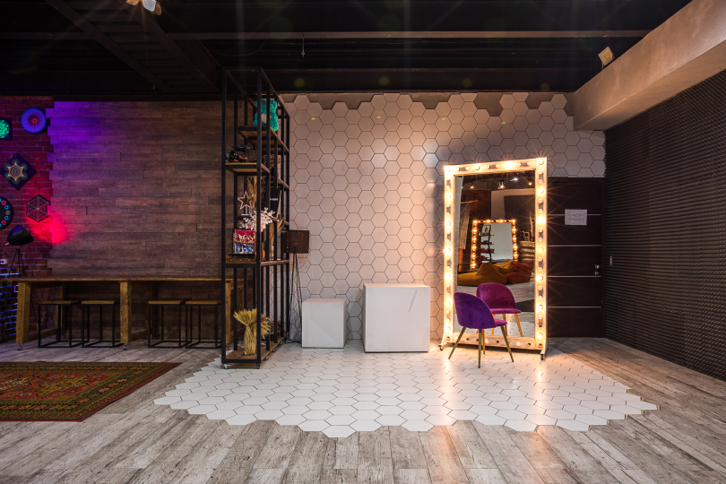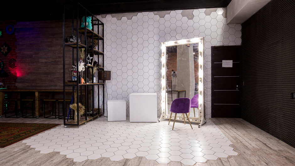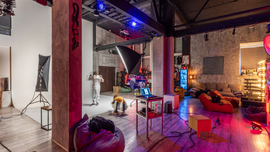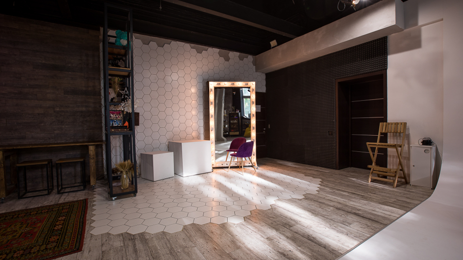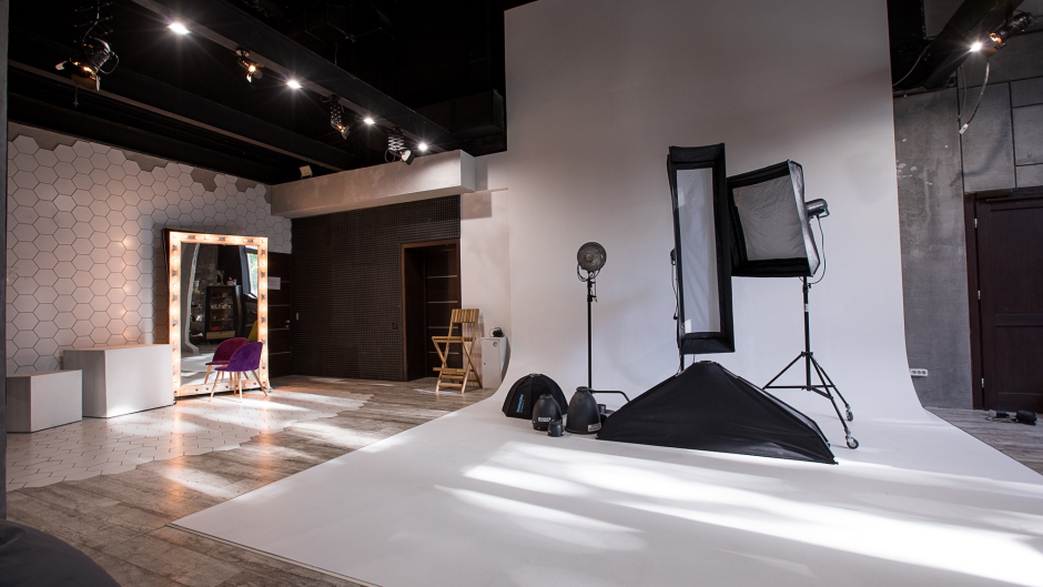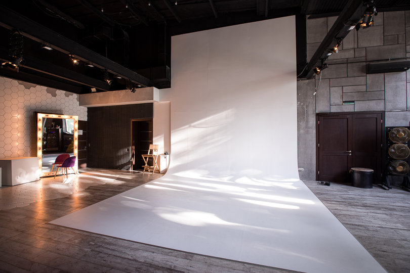 нашего зала составляет 154 м² + 66 м² (ресепшен, гардероб, 4 санузла). Высота потолков варьируется от 5,5 до 6 метров. У нас уникальный дизайн и разнообразие локаций, каждая из которых интересна своим интерьерным решением для ваших творческих съемок. В нашей студии есть циклорама размером 5х5х5 метров. Мы предоставляем выделенную линию интернета со скоростью до 400 Мб/сек.