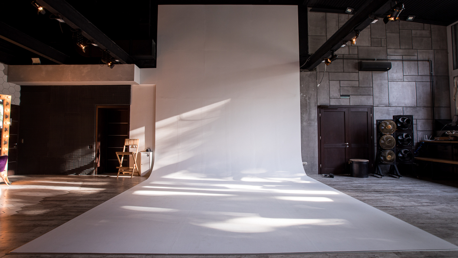 Белая циклорама 5 на 5 на 5,5 метров. (Очень высокая)