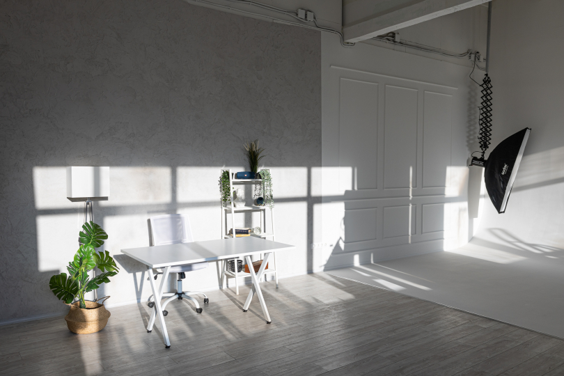 Для создания делового фото и видео контента в зале есть удобная офисная зона. Всё, что нужно для комфортной работы, под рукой.