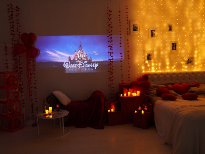 - проектор идеален для съемок lovestory, fashion и др: можно включить красивую картинку на фон! Он может работать без ноутбука: встроенный Smart TV, bluetooth, мощные колонки, WIFI, беспроводная синхронизация с телефонами Android и IOS;
