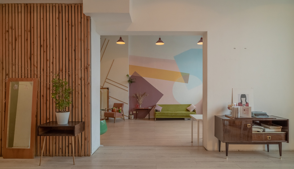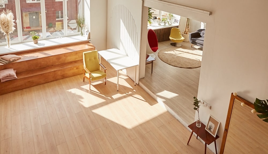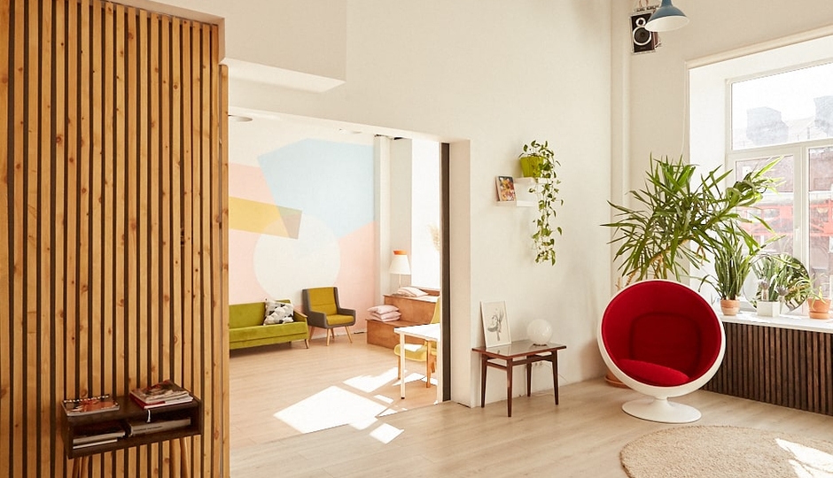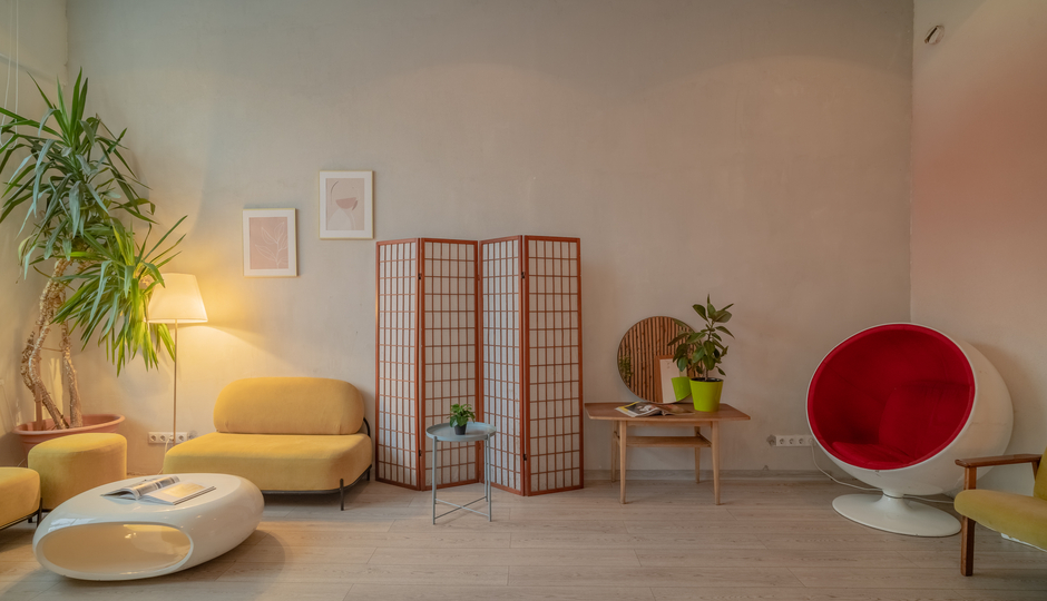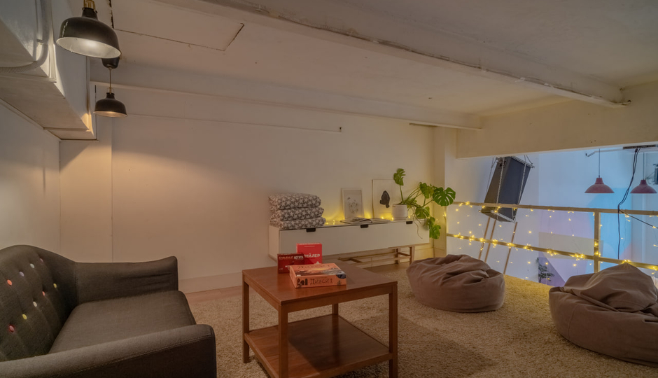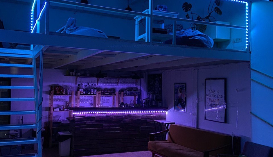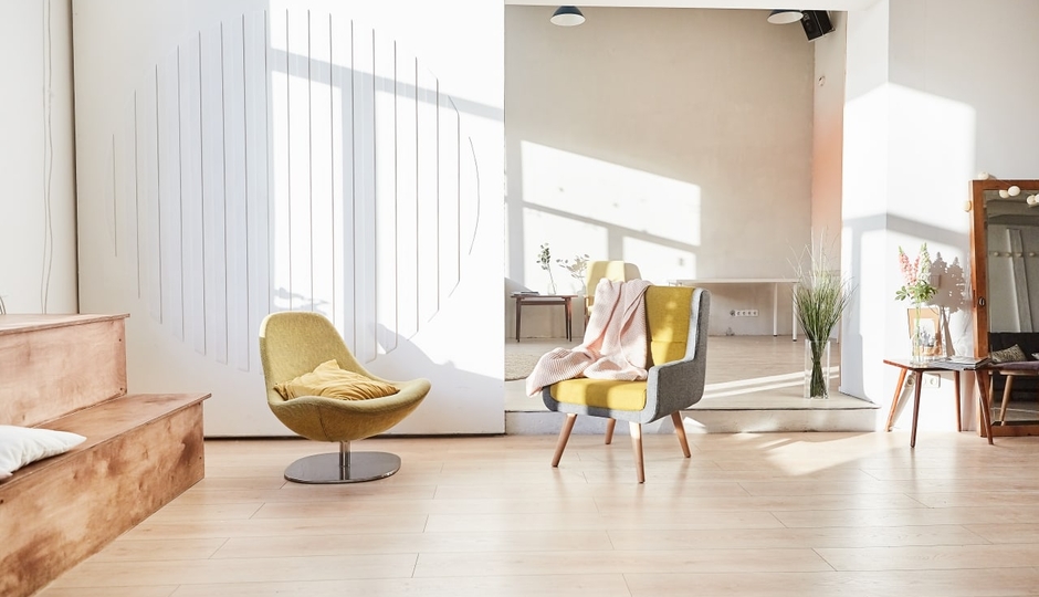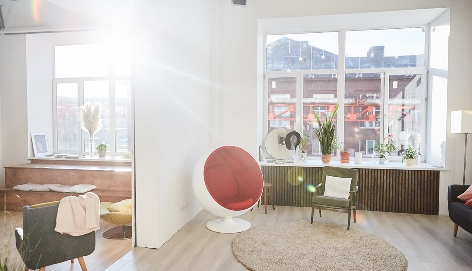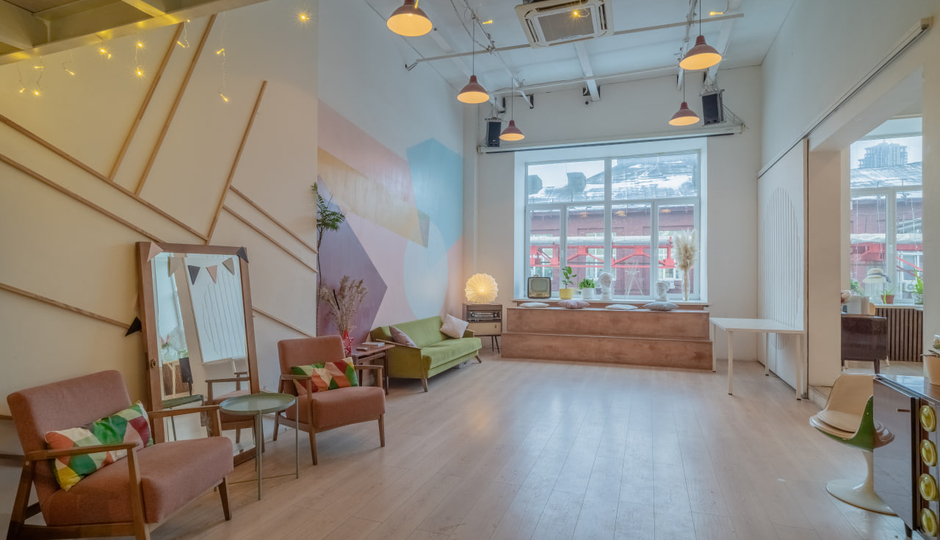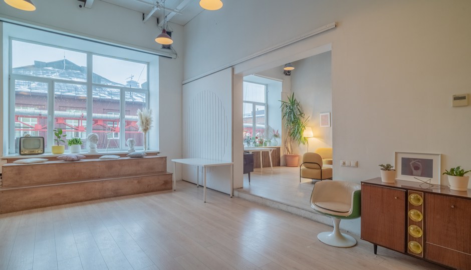Стильная светлая Студия на Киевской с естественным светом от больших окон, пятиметровыми потолками и 2-мя залами с возможностью изоляции.
