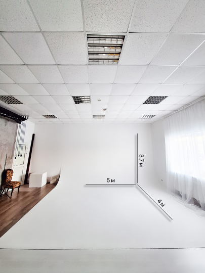 Зал с циклорамой 5х4 м, система крепления фотофонов (черный, серый, иные цвета по запросу), есть возможность установки холстов. Подойдет для сьемки маркетплейс, бизнес сьемки, сьемки многочисленной группы людей (до 40 человек), проведения мастерклассов, сьемки бизнесконтента