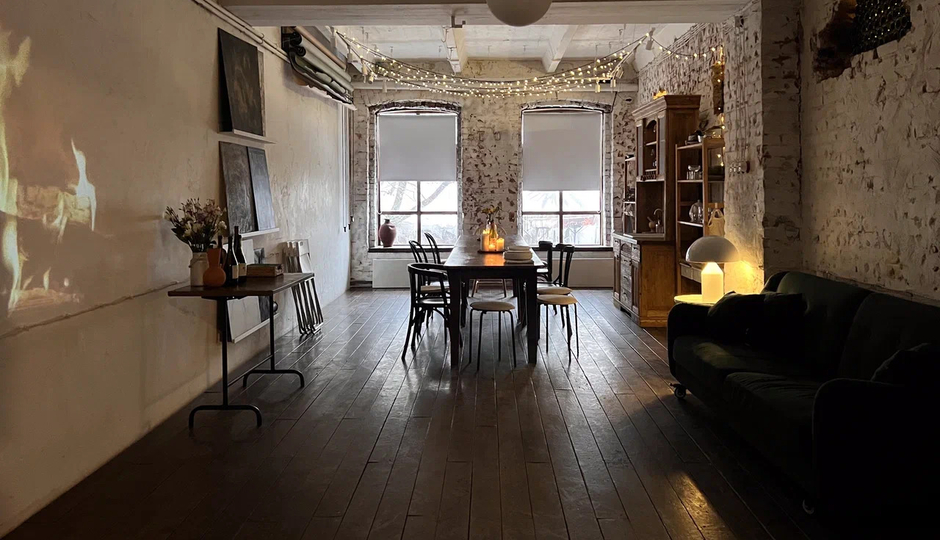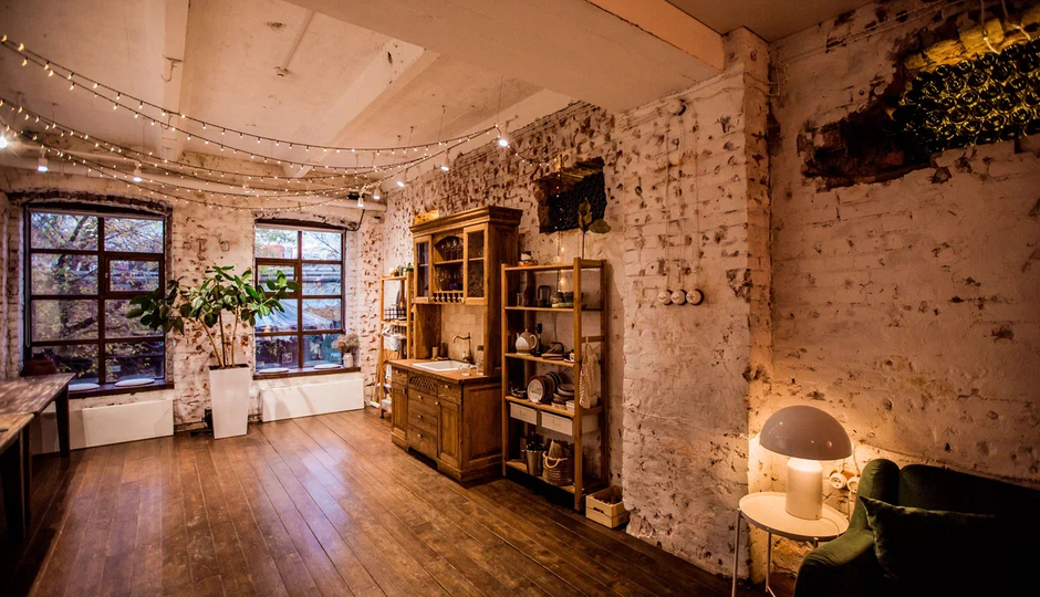 Стильный лофт для приватных мероприятий. Авторская деревянная мебель и уникальный декор. Мокрая точка прямо в зале.