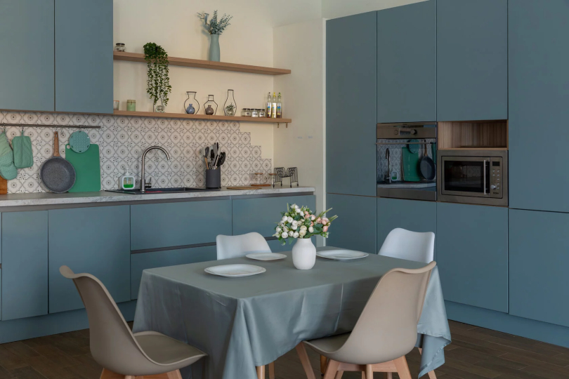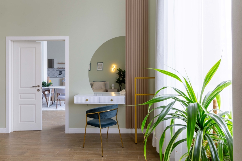 Большой зал с окнами на восток и на юг. В зале оборудованная угловая кухня со сменными фасадами и рабочей бытовой техникой. Есть возможность размещения больших команд и продакшенов.