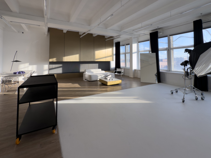 Просторный зал 80 м² с потолками 4 м, идеально подходящий для фото- и видеопроектов, мероприятий, мастер-классов и съемок лукбуков.