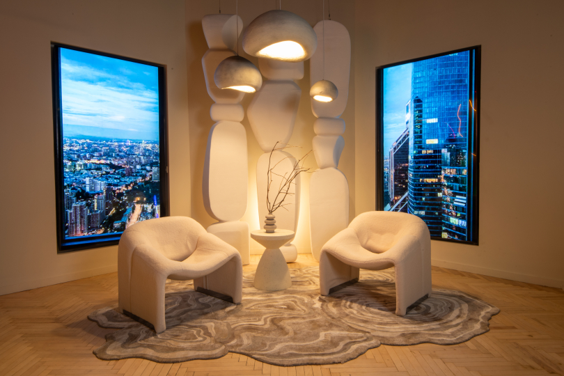 - 100−дюймовые экраны имитируют панорамные окна. Туда можно завести вид любого города и переместиться на другую часть света
