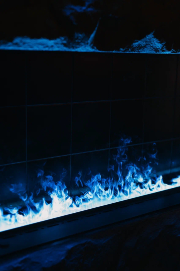 2. Четырехметровая стена-скала с камином (подсветка скалы и пламя огня меняются)