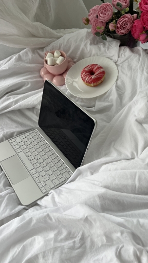 Светлый зал с небольшим подиумом у окна, на котором на уровне окон находится большой напольный матрас с белоснежным бельём (можно постелить ярко-розовое, на ваше усмотрение)
