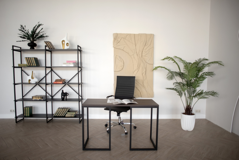 Зелень, вазы, сухоцветы, книги, предметы декора.