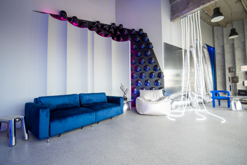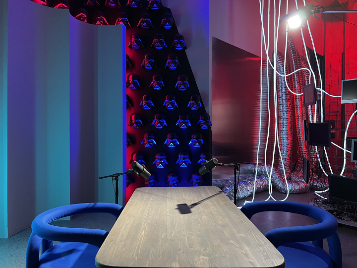 EPOS - крейзи-студия с эксцентричным характером. 70кв метров креатива, арт-объекты и инсталляции. 7 локаций для абсолютно разного контента: 50 голов Дарта Вейдера, стена-волна, свисающий с потолка неон, бегущие строки, угол из лент с подсветкой, бетон