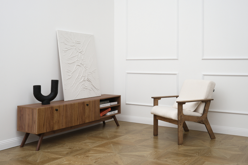 Белая стена / имитация паркета «елочка»