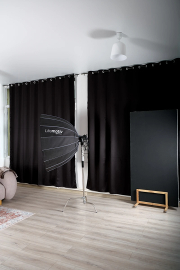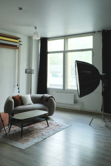 Наша фотостудия предлагает аренду светлого пространства площадью 46 м² с потолками в 3,5 метра и большими окнами. В вашем распоряжении будут фотофоны, мебель и минималистичный дизайн с яркими, акцентными элементами, который подходит для различных съёмок.
