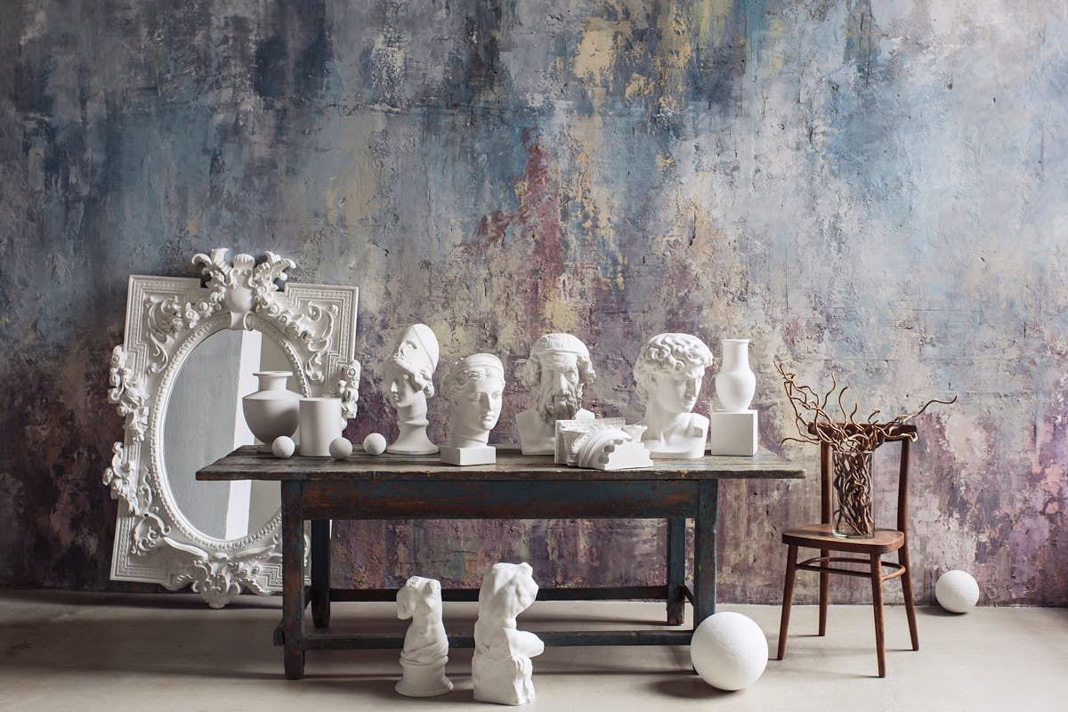 Зал с большой угловой циклорамой, естественным светом и широко представленным реквизитом. Декорированная стена, расположенная у окна, является особой чертой пространства. Настроение зала совпадает с мастерской скульптора, в которой царит атмосфера бесконечного творчества.