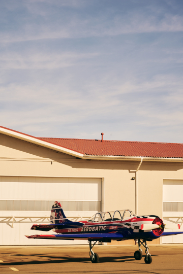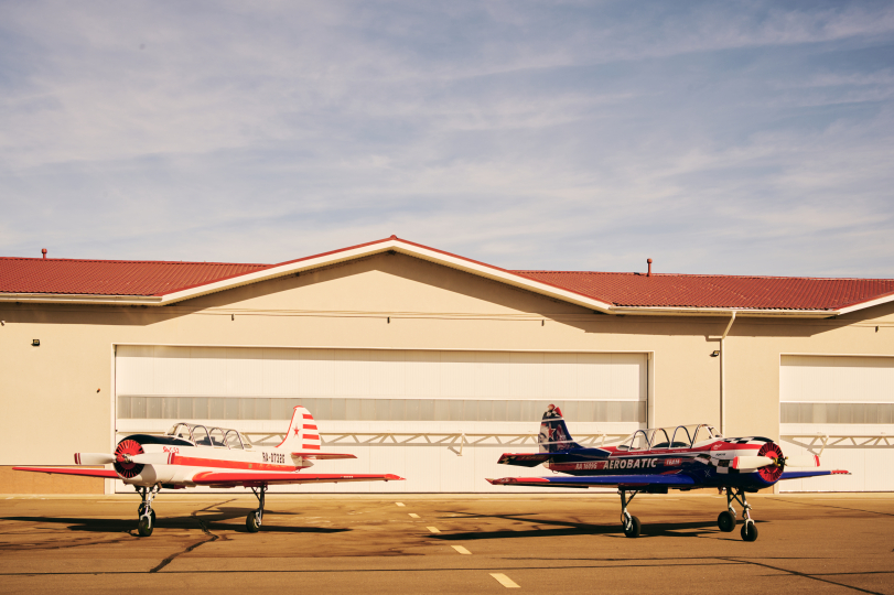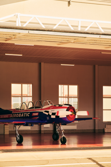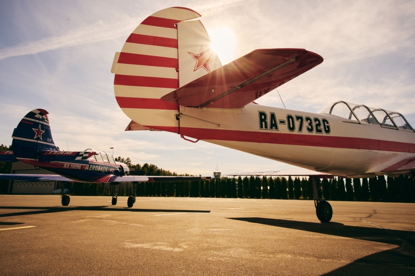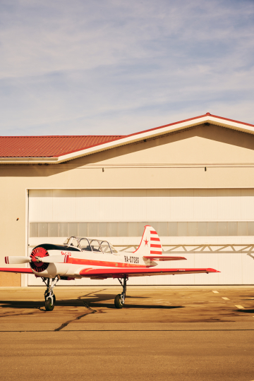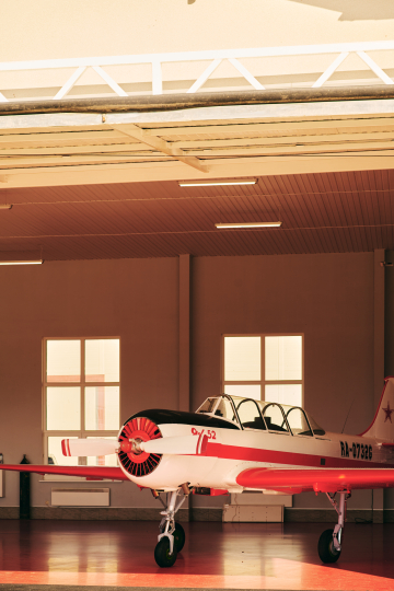 Современный ангар с бережно отреставрированными самолётами. Площадь ангара более 300 кв.м. позволяет установить технику и подобрать идеальные ракурсы для воплощения самых смелых
